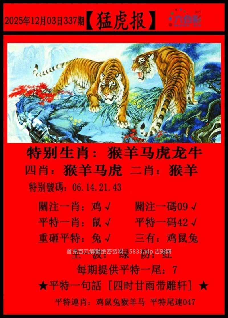 | 339期 | 猴蛇牛鼠兔虎猪 | 开:發00中 |
